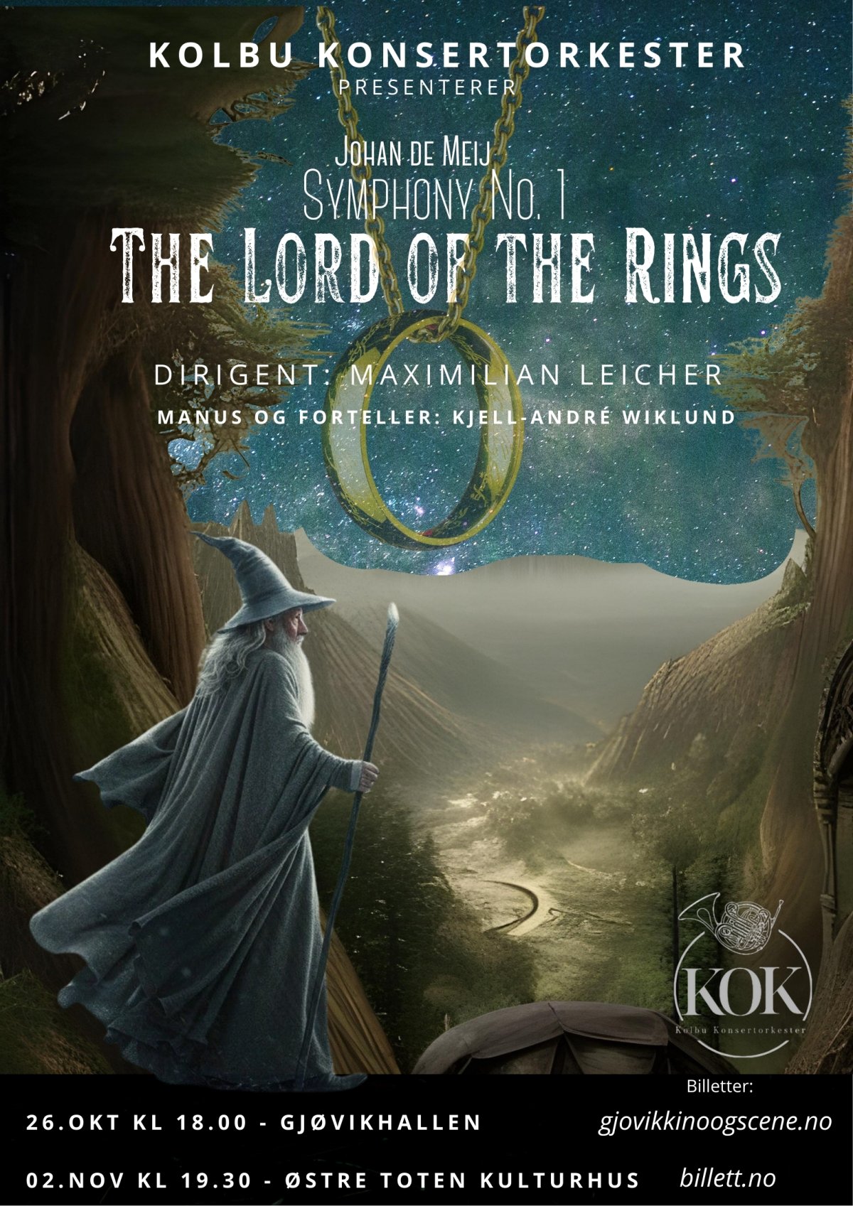 Johan De Meij's symfoni The Lord of the Rings er skrevet for blåserorkester og er basert på J.R.R. Tolkiens fantasibok. De Meij, en nederlandsk komponist og musiker, skrev denne symfonien på 1980-tallet, lenge før Peter Jacksons filmer. Verket består av fem satser, der hver scene illustrerer en karakter eller en viktig hendelse fra boken, som Gandalf, Lothlórien, Gollum, en reise i mørket med Moria-gruvene, og til slutt hobbitene. Denne høsten framfører vi symfonien to ganger.